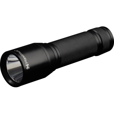 Zuverlässige, temperaturbeständige Aluminium Taschenlampe mit griffsicherer Riffelung und Stroboskop Modus.